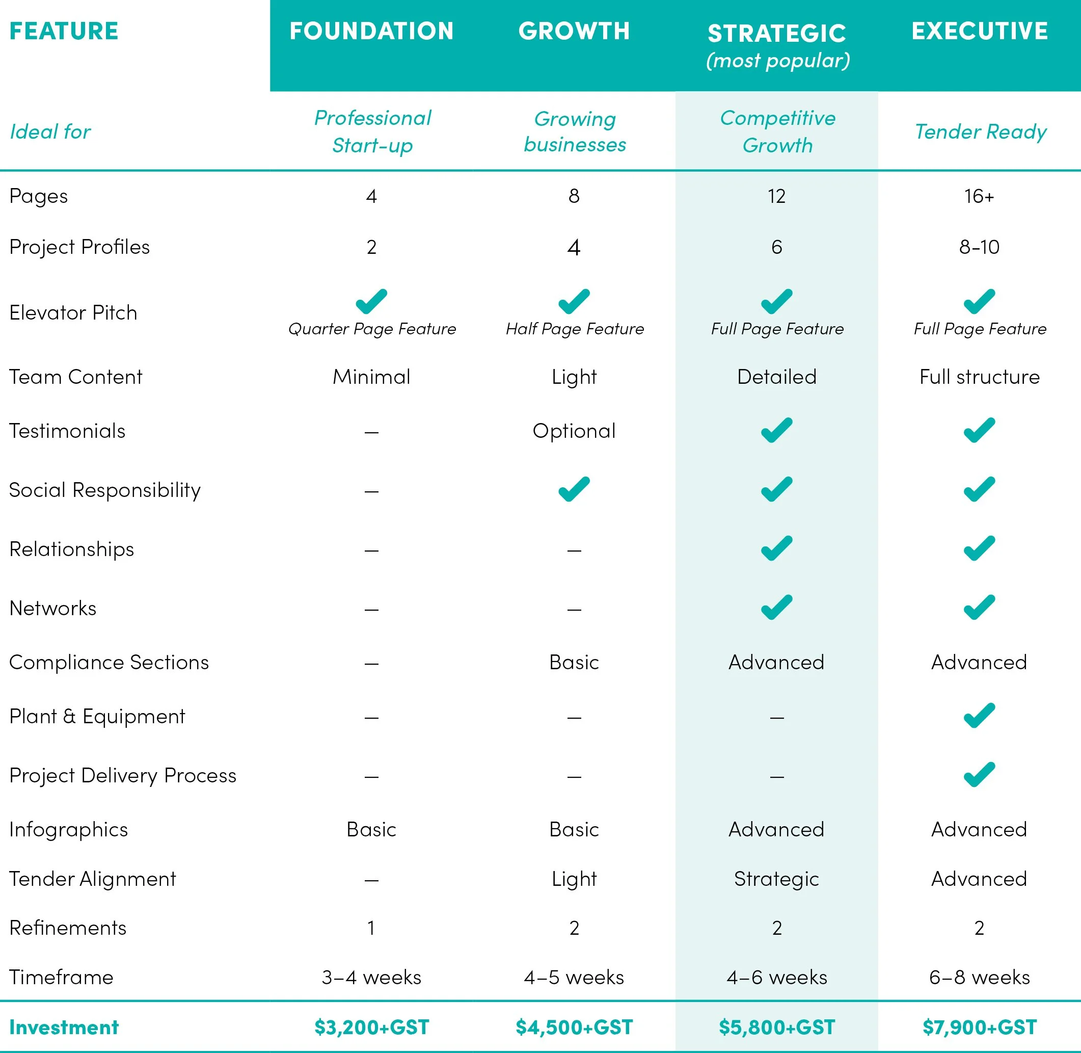 Ideal for businesses moving into active tendering or growth.
